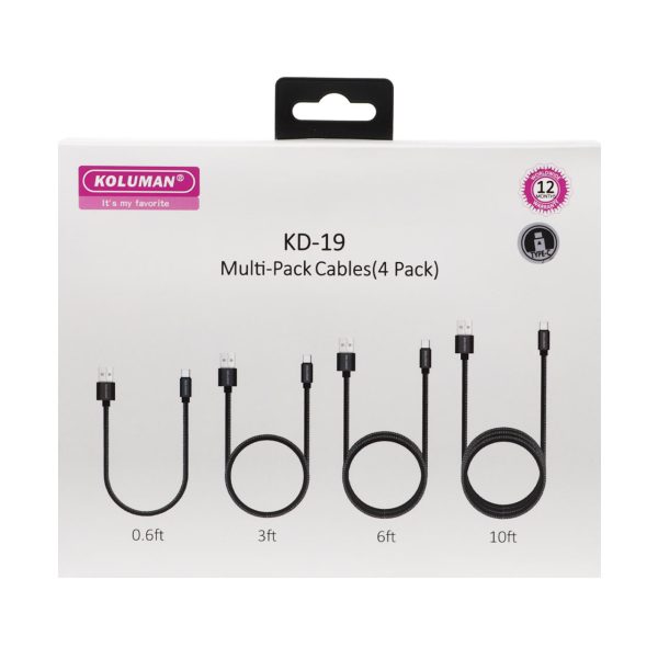 کابل کلومن تبدیل USB به Type-C مدل KD19 بسته 4 عددی