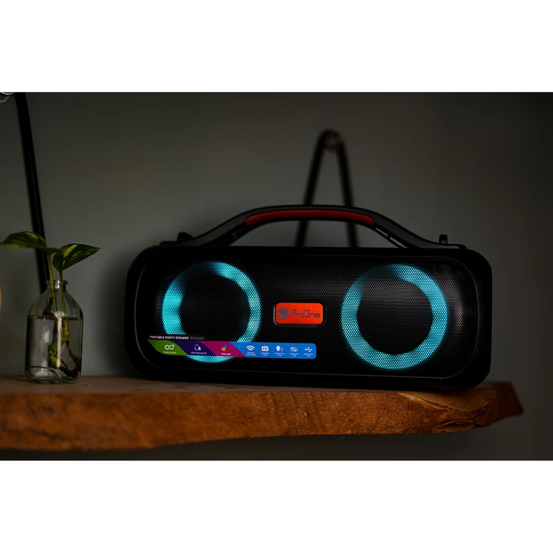 اسپیکر مدل ProOne PSB4903 با توان 40 وات، فناوری بلوتوث 5.0،نورپردازی RGB،قابلیت تماس بیسیم و باتری با شارژدهی بالا،انتخابی مناسب برای علاقمندان به اسپیکر پرتابل قدرتمند است.چه در محیطهای کوچک خانگی،چه برای مهمانیهای فضای باز قابل استفاده است.